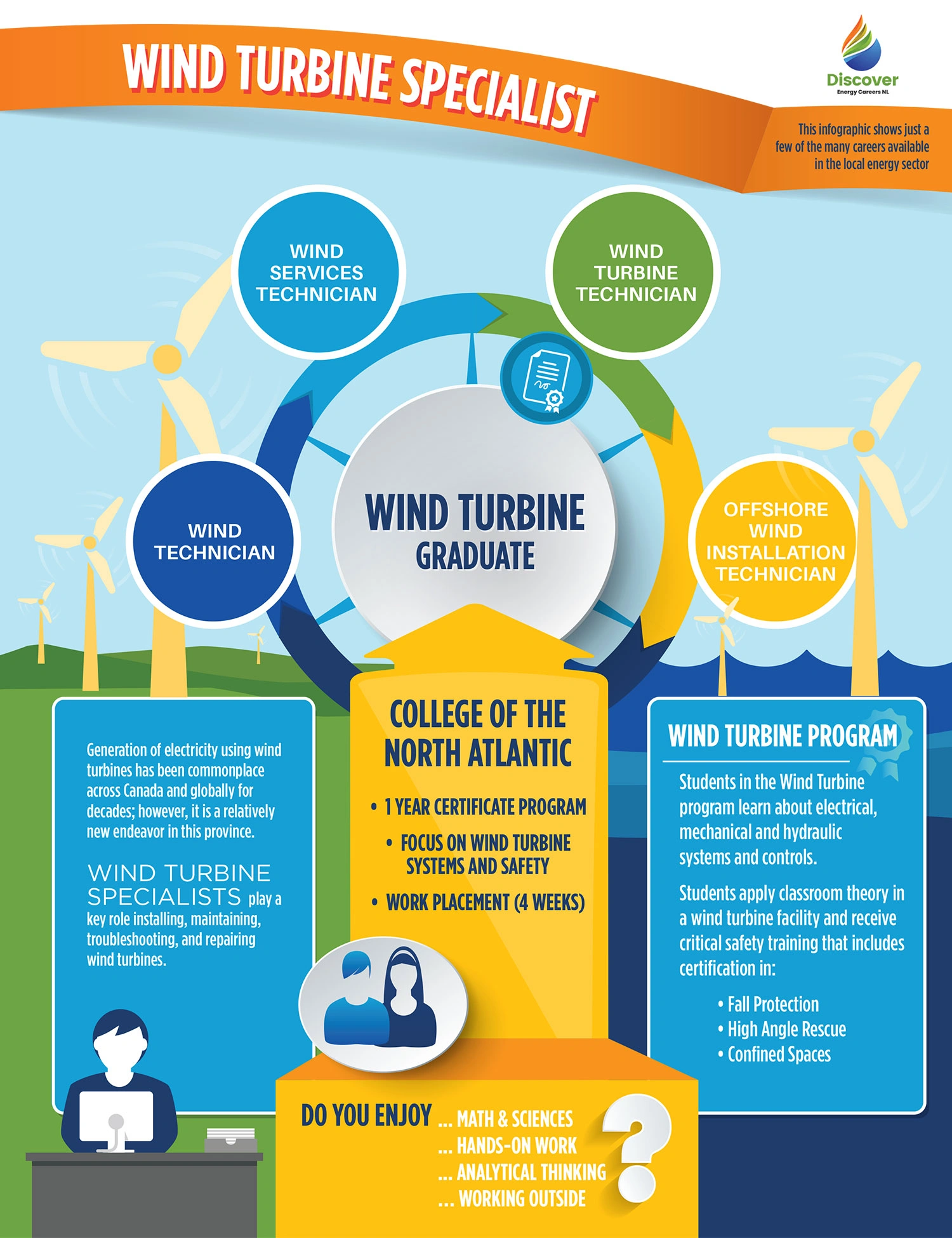 Below are career-focused infographics showcasing career paths in the broader renewable energy sector. These visuals emphasize roles in wind, solar, biomass, and geothermal energy, along with required skills and industry outlook.